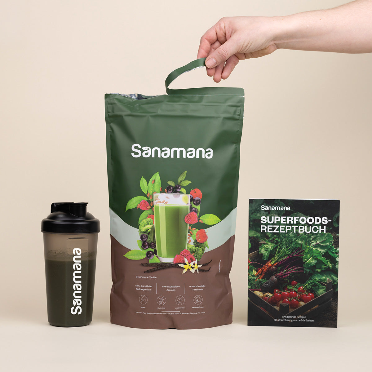 Die perfekte Mischung aus grünen Superfood-Pflanzen, pflanzlichen Proteinen, Gemüse-Extrakten, Extrakten aus Obst & Beeren, essenziellen Vitaminen & Mineralien, Ballaststoffen, Bakterienkulturen und Verdauungsenzymen.